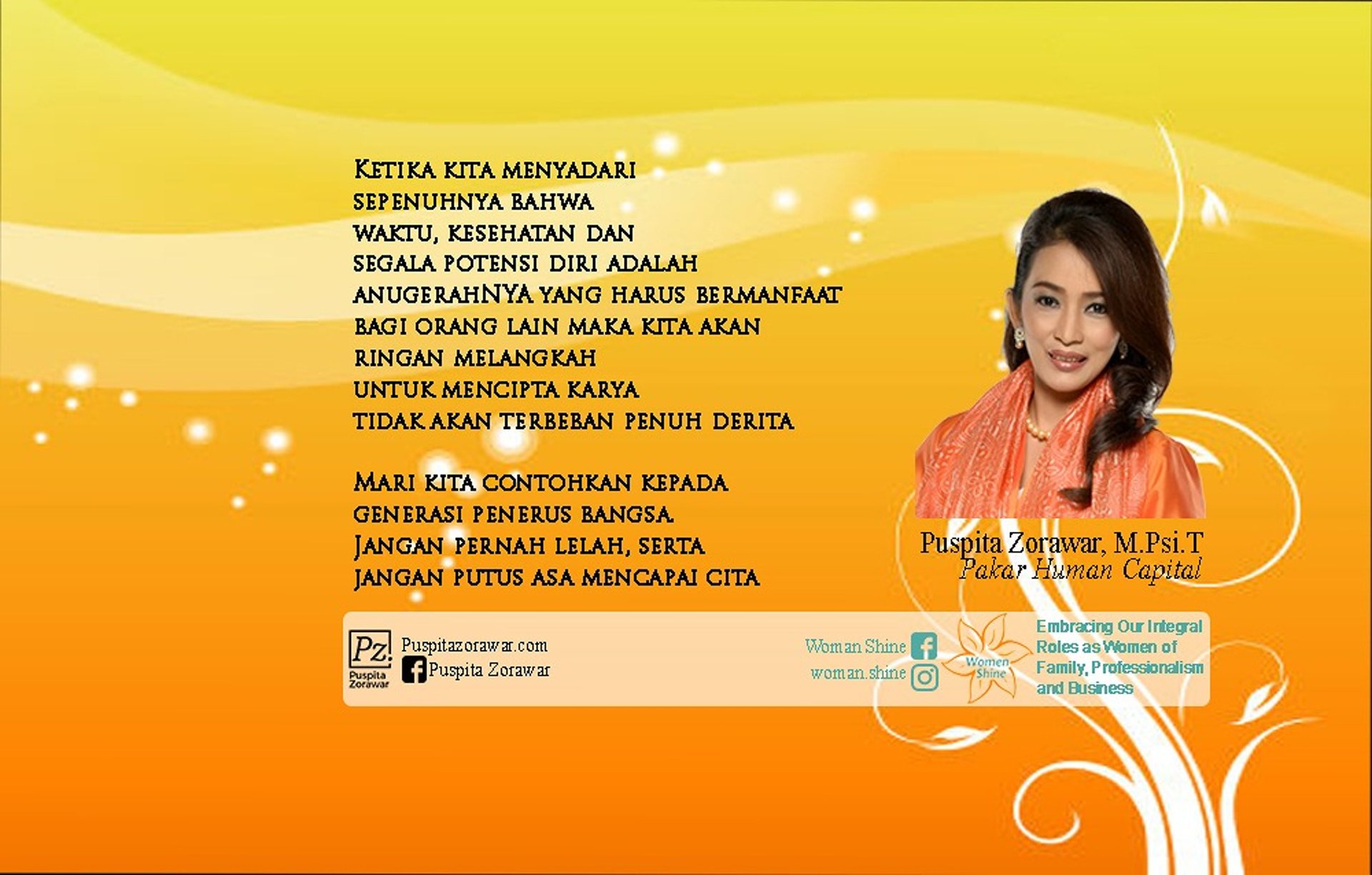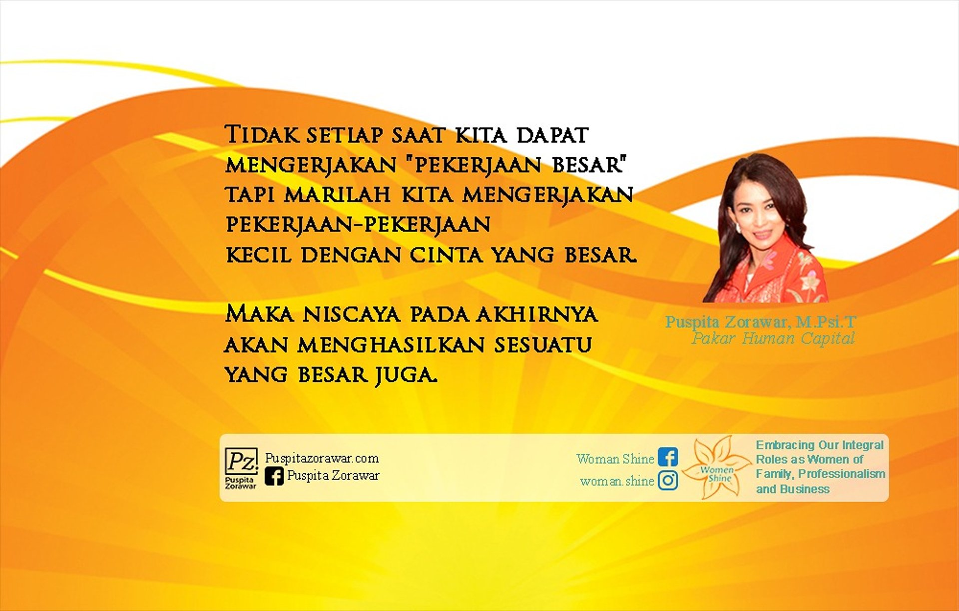 dikenal sebagai sosok inspiratif yang menggabungkan pendekatan psikologis dengan strategi bisnis modern untuk mendukung setiap individu mengasah potensi diri menjadi kompetensi nyata (Knowledge, Skill, Attitude) agar berdaya saing dan dapat mencapai whealth di era AI dan perubahan global, juga memberikan pesan inspiratif & edukatif untuk visitor.