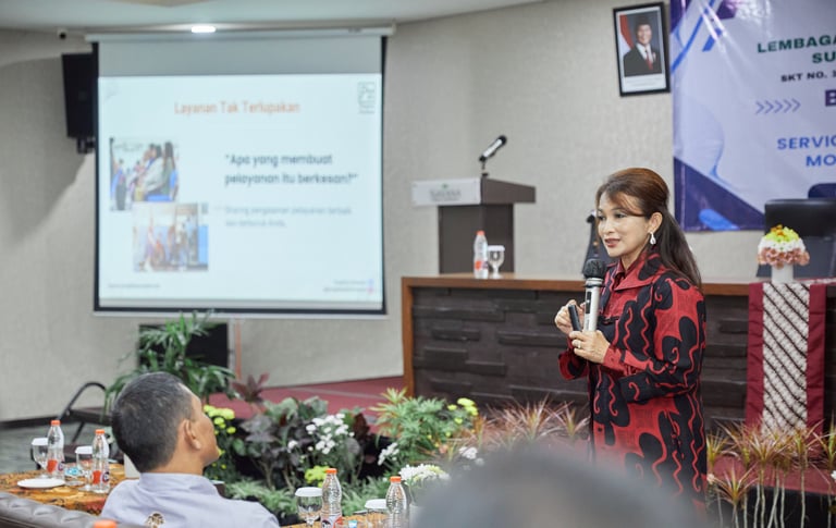 Bagian terakhir dari sesi ini mengajak para ASN untuk membangun motivated service culture, budaya organisasi yang hidup dari semangat individu. Budaya pelayanan unggul tidak lahir dari slogan, tapi dari tindakan konsisten dan keteladanan pimpinan. “Culture is built by consistent actions, not slogans,” ujar Puspita menutup sesi pelatihan dengan tepuk tangan meriah dari seluruh peserta. Para peserta mengakui bahwa sesi dua jam ini menjadi wake-up call yang segar dan menggugah.